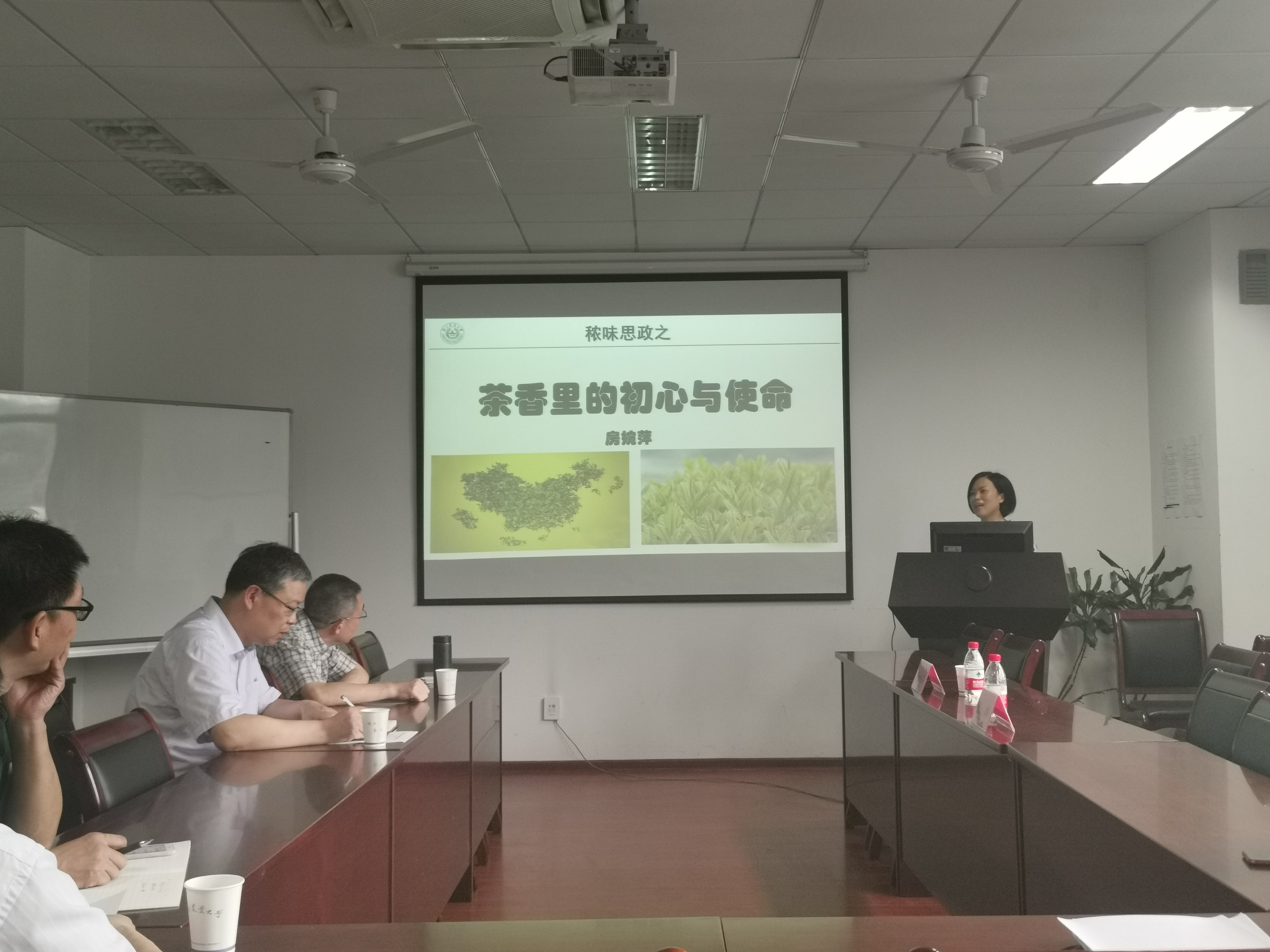 园艺成人视频房婉萍教授作了题为“秾味思政之茶香里的初心与使命”的教学示范,从介绍茶的历史到如今茶的作用与地位,指出茶叶是中国文化自信的新名片;从介绍茶的制作进而延伸到南京雨花茶的由来,突出茶叶制作过程中体现的工匠精神;从介绍茶叶冲泡方法到类比茶味人生,讲述茶学知识中体现的奋斗之歌。房老师的教学示范中,将每一个知识点很自然的与专业认知教育、思政教育进行结合。在成人视频教师提问与交流过程中,房老师对申报书组织、课程教案撰写等方面进行了解答。