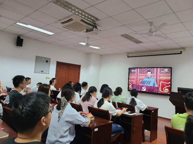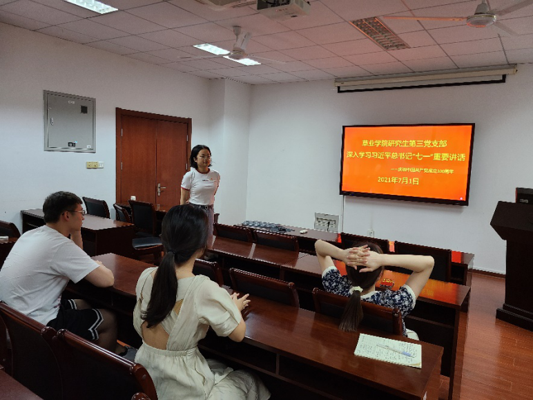 研究生第三党支部在集体观看中国共产党成立100周年庆祝活动直播结束之后于理科南楼F304召开了关于习近平总书记“七一”重要讲话的专题学习会。会议由党支部副书记吴佳璇主持。