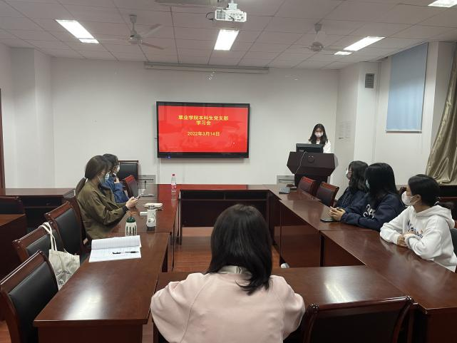 本科生党支部开展专题学习会,支部党员石雅琦与刘奥然分别结合近期时事热点进行“微党课”讲解,支部书记武昕宇主持会议。