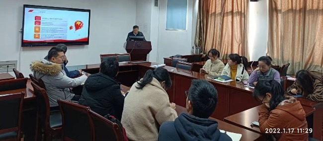 然后,支部书记邵涛教授代表党支部委员会向党员大会述职,总结2021年开展工作,从党史理论学习,到实践参观,再到服务师生贴近群众。通报党支部委员会查摆问题情况,并接受党员评议。