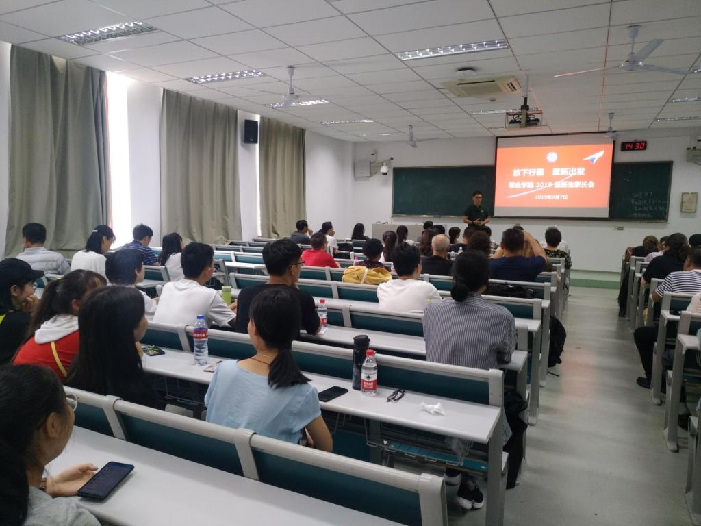 9月7日下午,草业成人视频2019级新生家长见面会于主楼109如期举行。院党总支副书记高务龙、草业191班主任庄黎丽、草业国际191班主任覃凤飞、辅导员董宝莹以及全体2019级新生及家长参与本次会议,会议由高务龙副书记主持。