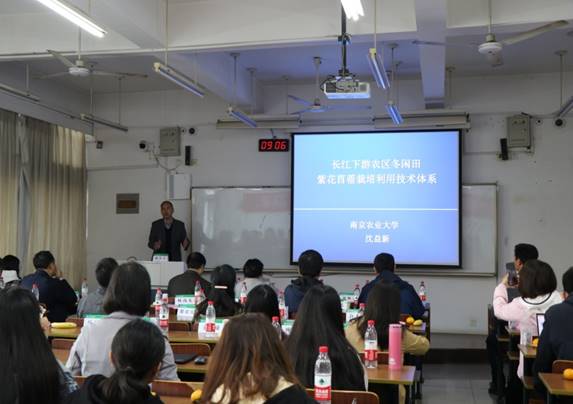 教授杨志民以及教授沈益新,师资博士后张敬分别进行了题为“华东地区草种质资源收集与利用”,“冬闲田紫花苜蓿栽培技术体系”以及“乙酸化修饰调控多年生黑麦草抗旱机制初探”报告。引起了与会人员的热烈探讨。