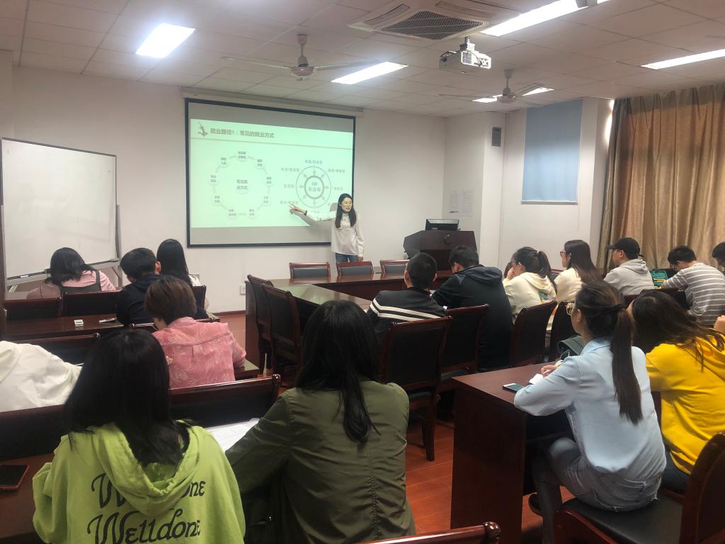 研究生会邀请武昕宇老师,在成人视频会议室举办“跨越·2019”就业指导讲座。