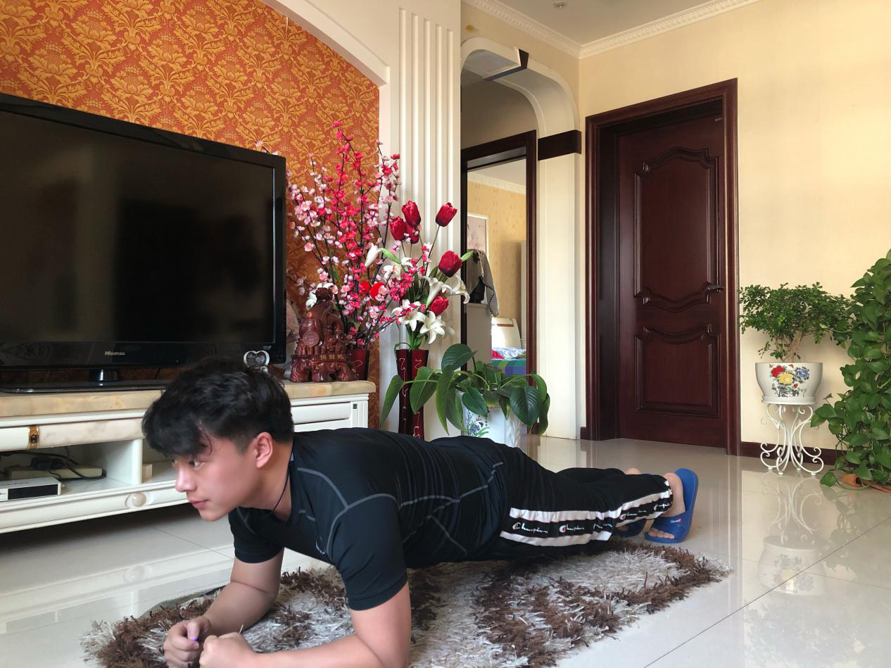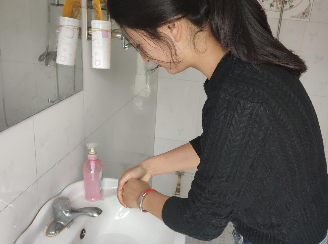 下午六点党支部宣传委员冯冠楠开始每日锻炼。虽然在疫情防控期间不能随便外出,但适当在家中进行锻炼却必不可少,健康的身体源于运动。他正努力做着平板支撑。伏秀珍也结束了当天的值班。此时的她正在洗手,认真做好洗手的七个步骤:内、外、夹、弓、大、立、腕,养成良好的居家卫生习惯。