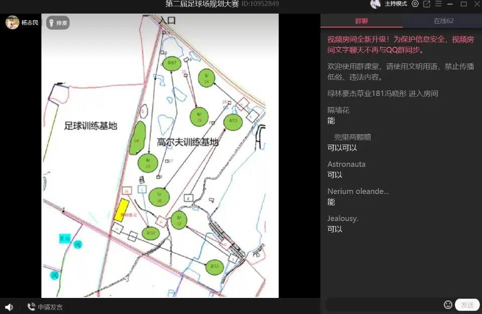 杨老师首先介绍了本次大赛的背景和主题,随后结合地图为同学们讲解了比赛设计场地的具体情况。本次大赛要求同学们以在建的句容草坪研究院足球培训基地为应用背景,从“科学创新”出发,以“实用性”为目的,对11片足球场地布局作出规划,并选择其中一片11人制球场用作训练场地做详细的设计和施工说明。