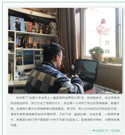 疫情是试金石,考验青年的初心;疫情是催化剂,加速青年的成长。从他们身上我们看到了新时代中国青年志存高远、报效祖国的坚定信念。从他们身上我们看到了新时代中国青年苦练本领、不懈奋斗的坚韧实干。从他们身上我们看到了新时代中国青年迎难而上、用于尽责的主动担当。 ----草业181路佳音