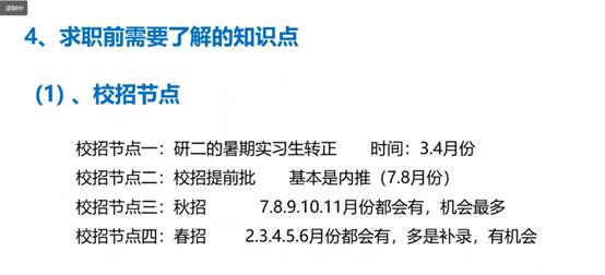 刘芳本次分享主要分为“研究生生活”和“就业准备与建议”两个部分。首先,她以“三个‘宜早不宜晚’”展开第一部分,强调把握时机和规划学习的重要性;接着,她传授了自身求职从思想到技能方面的准备,并安利了武昕宇老师的求职规划课,整个分享干货满满!