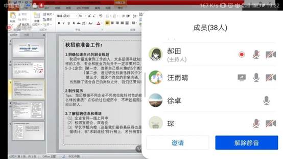 “三支一扶”支农岗是毕业生基层落实政策之一,指大学生在毕业后到农村基层从事支农和扶贫工作。徐卓从“求职经验分享”、“求职、招考信息的获取”等方面展开选择工作的心路历程,最后从“报考建议”中介绍了“三支一扶”的相关政策和考试经验分享,开拓了同学们对不同就业方式的认知。