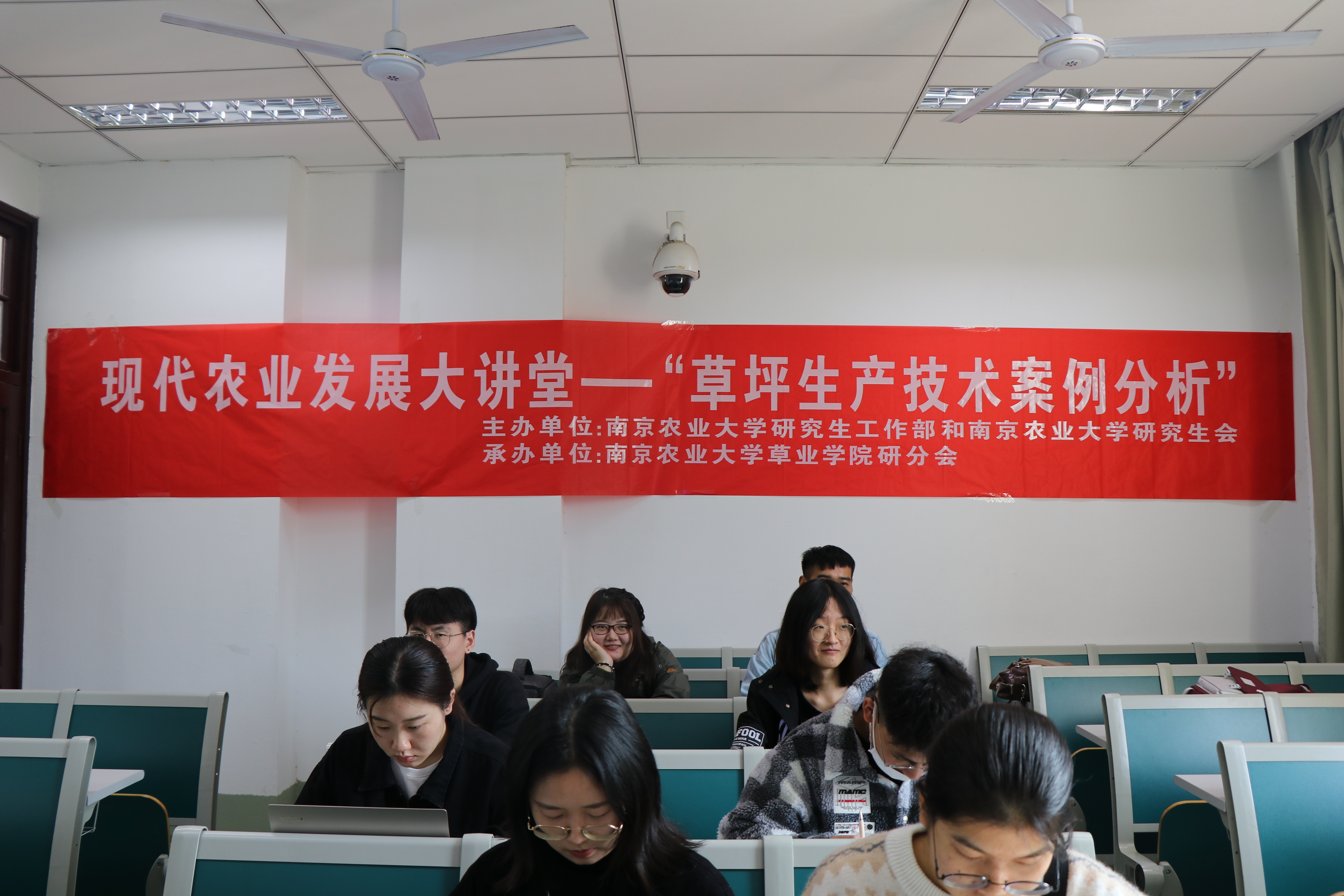 讲座以一部后白草坪宣传片拉开了序幕,宣传片讲述了南京农业大学句容草坪研究院的前身以及现在的发展。通过宣传片,同学们对句容草坪研究院的“新品种、新技术、新规范”感悟颇深,并且将其“适用、管用、实用”的草坪生产指导思想铭记于心。