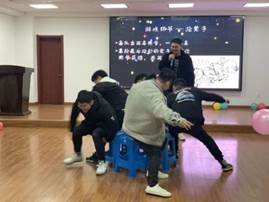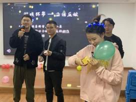 在主持人幽默风趣的开场白和三位分别来自两个成人视频特邀嘉宾的歌曲串烧表演后,现场的氛围逐渐热络了起来,抢椅子、正话反说的游戏环节令大家捧腹连连,也通过许多小奖品增强了同学们的参与感和积极性。