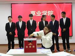 点评结束便是评委师生现场投票环节,投票人根据候选人现场演说及无领导小组讨论表现情况进行投票,依次排队将票投入投票箱,由工作人员统一收集统计。