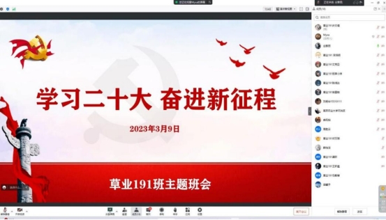 草业191班于3月9日上午在班主任庄黎丽的组织下,线上召开了“学习二十大,奋进新征程”主题班会。首先,全体同学观看了“学习二十大 永远跟党走 奋进新征程”主题云团课,通过学者讲述、沉浸场景和互动交流等形式带领同学们全方位解读党的二十大精神的重要意义和丰富内涵,让同学们牢记总书记的嘱托,以新时代青年应有的姿态一起向前奋进!