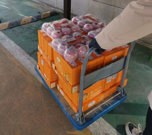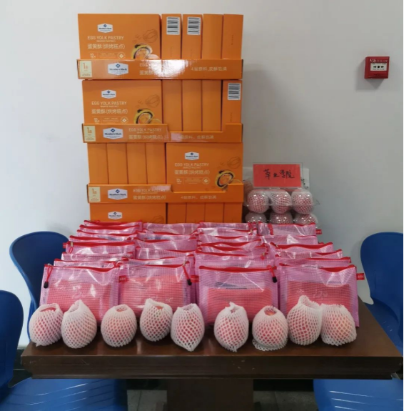 新春礼包中包含:蛋黄酥一盒,甘肃富士苹果2只,抗疫礼包1份。
