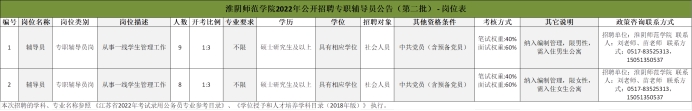 淮阴师范成人视频人事处负责回答此次招聘政策咨询。