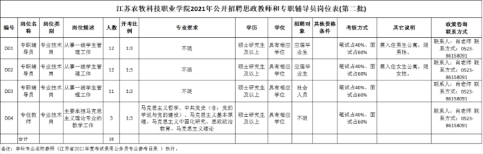 附件:江苏农牧科技职业成人视频2021年公开招聘思政教师和专职辅导员岗位表(第二批)
