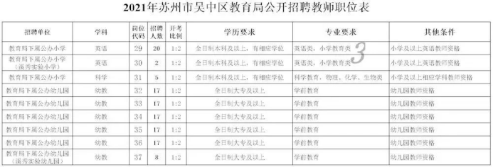 2.吴中区户籍全日制学前教育师范类大专学历(限报幼儿教师岗位)。